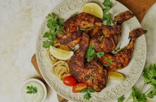 نصف دجاج مع صحن بريائي / مشخول / مجبوس